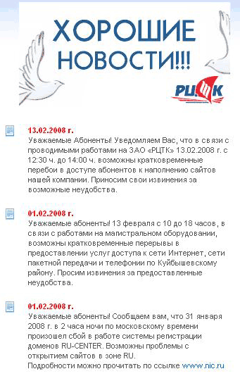 У провайдера "РЦТК", радуется Дмитрий, всегда только хорошие новости.