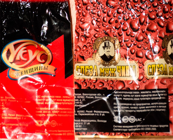 Чтобы увидеть конфеты "Слезы мужчины" не обязательно ехать в Германию. У нас есть магазин, в котором, целая россыпь таких названий, помимо этих... Как вам "Бодрая теща"? "Кочегар Петя" и "дядя Женя", "Гламурный отдых", "Повелитель мира"? Взвесьте мне, "Доярки Маши" триста грамм, пожалуйста.....