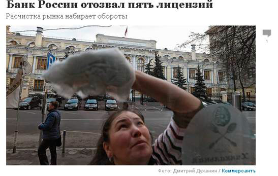 "Коммерсант" все попсеет и попсеет, вздыхает Юлия. Проиллюстрировать расчистку банковского рынка помывкой окна хинкальной - это даже не на уровне Lifenews. Ну да, тетя старается на фоне Центробанка. И чо? Банк России у нас хинкальные расчищает?