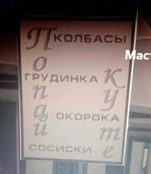 Кал.колб заставило меня вспомнить коллекцию прикольных чеков, благополучно где-то утраченную. Там было: "МорВолФона", "СВинЯбл", "СемПод300гр." и проч.под...