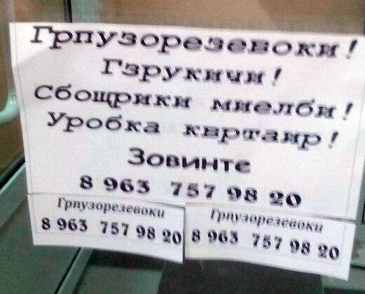 Если уробка квартаир нужа, предлагает Сергей, зовинте! Только вот интересно, на каком языке-то с ними разговаривать?!!