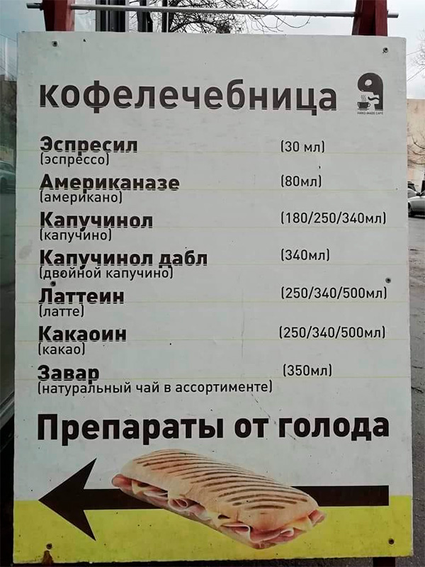А вот тут - забавно, считает Гена. Кофелечебница и препараты от голода.