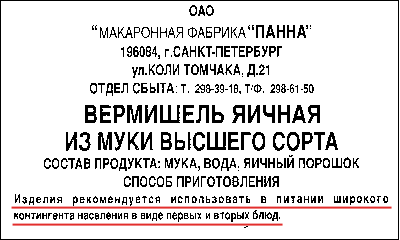 Что говорите? Не хотите этой итальянской заразы? Хотите родные, исконно российские макароны? Да нет проблем! Наши макаронные изделия с легкостью могут служить не только вторым блюдом, но и первым. И еще компотом...