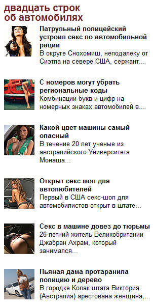 Ну и подборка новостей к авторазделу - тоже вполне достойна КМ.ру, а не "Газеты". До чего же опошляются-то некоторые издания...