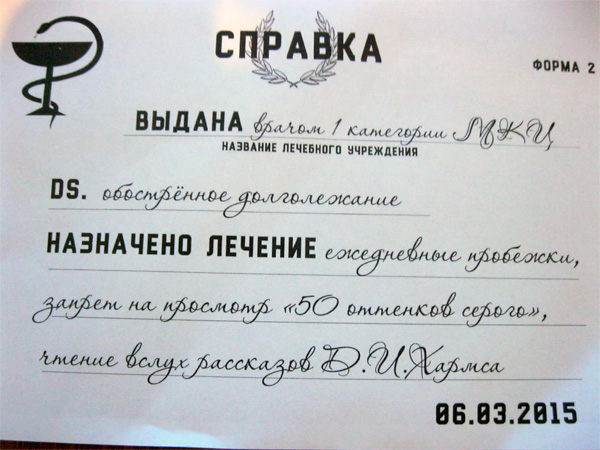 Михаил получил оригинальный рецепт от врача. А что, гениально, всем бы мужикам выписали такой запрет...