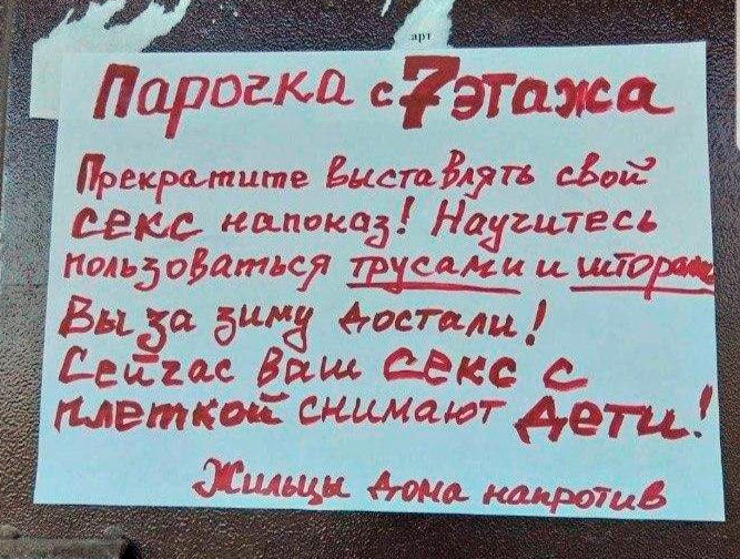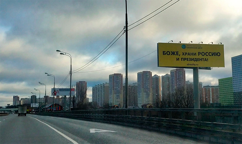 Идиотские плакаты одной дамочки с Рублевки теперь не только на самой Рублевке висят, рассказал Евгений. Они уже по всей Москве. Мило, да? Боже, храни РОССИЮ и президента, понял? Под козырек и выполнять, быстро!