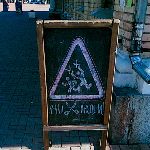 Классный штендер "Мы стрижём людей". На такую рекламу обращают внимание. Нетривиально, понятно и вызывает улыбку.