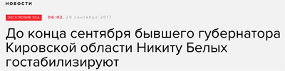 На "Эхе Москвы", рассказал Денис, что-то знают о дальнейшей судьбе Никиты Белых. Гостабилизируют - от слова "гос" и "стабилизируют". То есть восстановят на службе. Ура, ура!