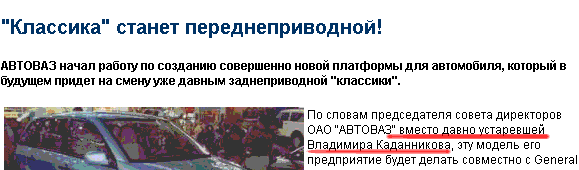 Barmaglot прочитал аналитическую статью в одном издании и аж обалдел от счастья: неужели этого устаревшего Каданникова действительно выпрут, и "Жигули" наконец-то начнут делать что-то, хотя бы как-то похожее на современные автомобили?!!