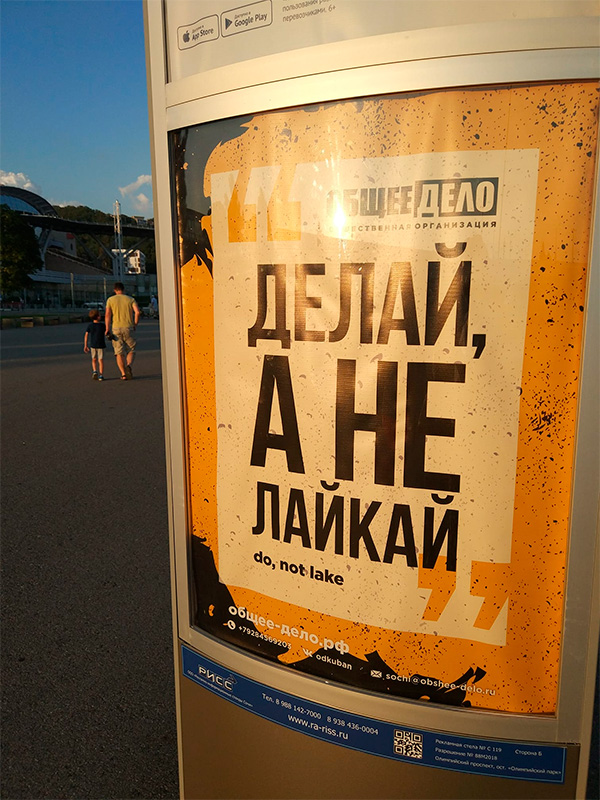 У меня есть дополнительный вопрос по поводу do, not lake. Вроде ж дело происходит в России. Организация вроде российская, реклама вроде для россиян. За каким х....ом там вообще эта надпись на английском?