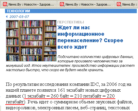 На news.by, рассказал Павел, для особо тупых расшифровали значение слова "экзабайт". Хорошо так расшифровали. Душевно.