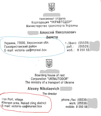 Это что-то потрясающее! Перевести "голопристанский" как "naked cling" - однозначное вам спасибо, Алексей Николаевич, директор. А вот почему вы Херсон-то не перевели? Тоже ведь, если разобраться, можно разложить на составляющие - "Хер сон", - как и "Голо пристанский"...