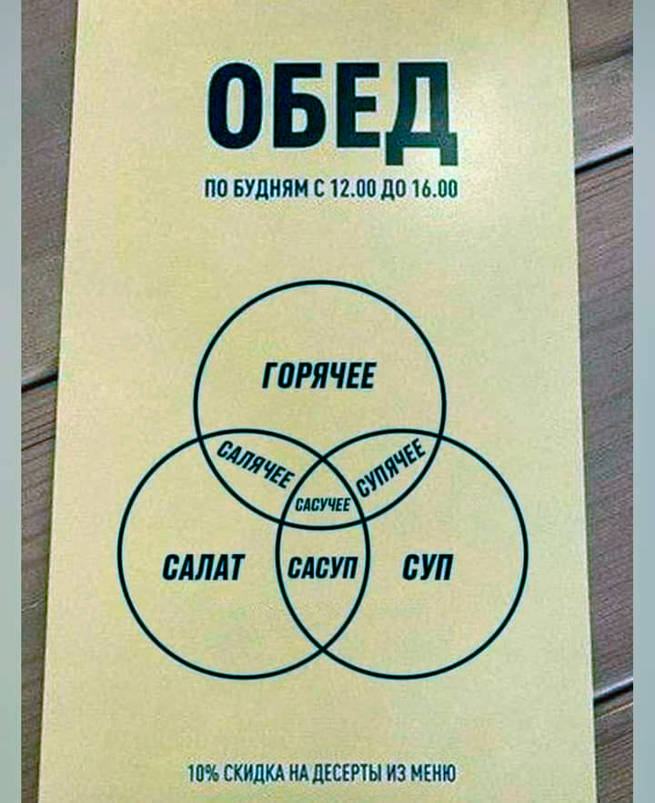 Интересно, а блюда из пересекающихся множеств представлены в ассортименте, задает вопрос El?