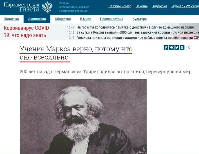 А ведь дедушка Ленин в своей эпохальной работе "Три источника и три составных части марксизма" говорил, что "Учение Маркса всесильно, потому что оно верно". Тоже, в общем, глупость несусветная, но хоть не такая, как в "Парламентской газете".