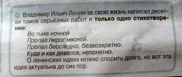 А про стихотворение Ленина, это не шутка, эти странные строчки про пропавший пирог и правда историки приписывают Ильичу 😄
