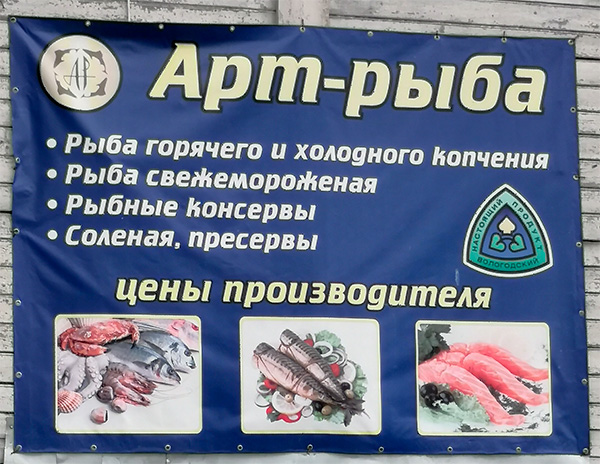 Мы с Бубликом думаем, что тут все проще. Это артель. Папа ловит, сын реализует. Вот и получается арт-рыба, то есть артельная. И никаких тебе художеств.