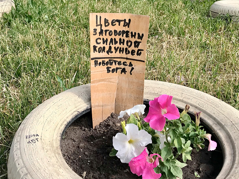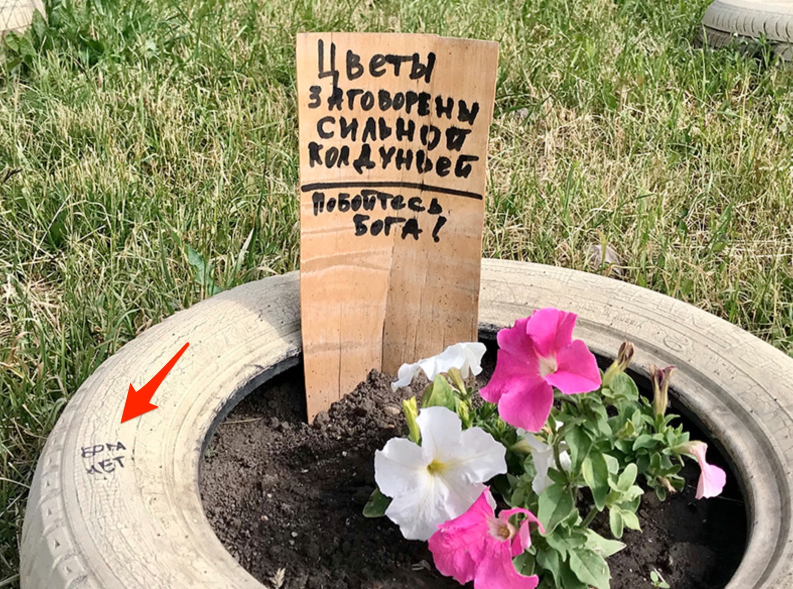 Какой-то атеист, похоже, у колдуньи цветочки уже скомуниздил.