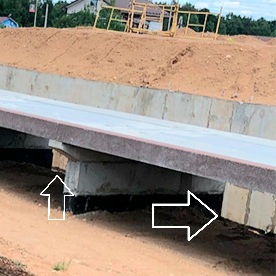 Всё же между вертикальной стеной и горизонтальной платформой есть приличный зазор и котлован. Такой, что видно ту стену из-под низа, между краями опор и переломом грунта.