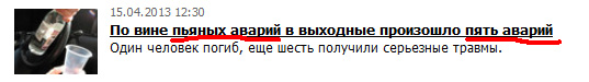По вине пьяных аварий, сурово замечает Сергей, пьяные аварии могут приводить к пьяным авариям!