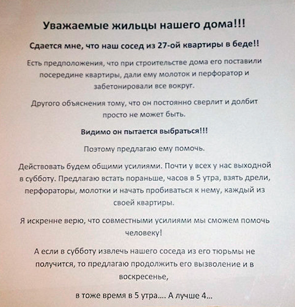 Денис прислал объявление из серии "Когда сосед окончательно достал".