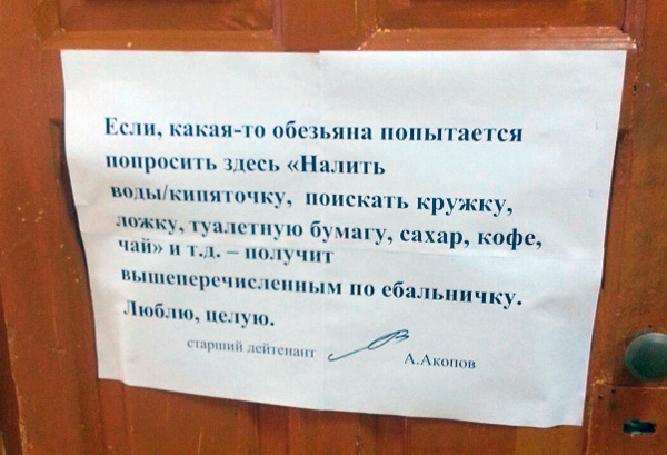 Денис лично сфоткал это объявление в лифте своего дома пару дней назад. И вообще всё, что присылает Алексу в баннизмы он фоткает сам, а не ищет в тырнете.