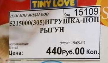 Полина предлагает купить вот такую милую игрушечку. Но я как представил попа-рыгуна - аж вздрогнул весь...