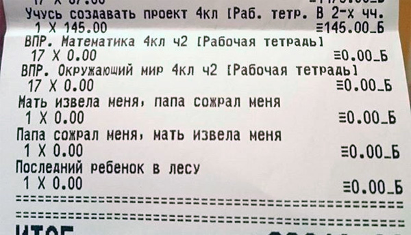 Мария купила в магазине "Лабиринт" всякие учебные пособия для ребенка, а "Лабиринт" ей в ответ подарил три книжечки - вон они, в конце чека, бесплатные.