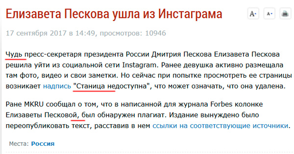 А вот чудь пресс-секретаря - это сильно. Не знал я, что Елизавета Пескова - финнка (финляндка? чудь, одним словом!)