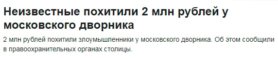 Все-таки в Москве не только безработные хорошо живут, у которых то "Бентли" похитят, то "Ламборгини", уверяет Андрей. Есть еще и дворники в московских селениях!