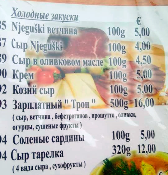 Пора обедать, предлагает Николай разносолы из Черногории.