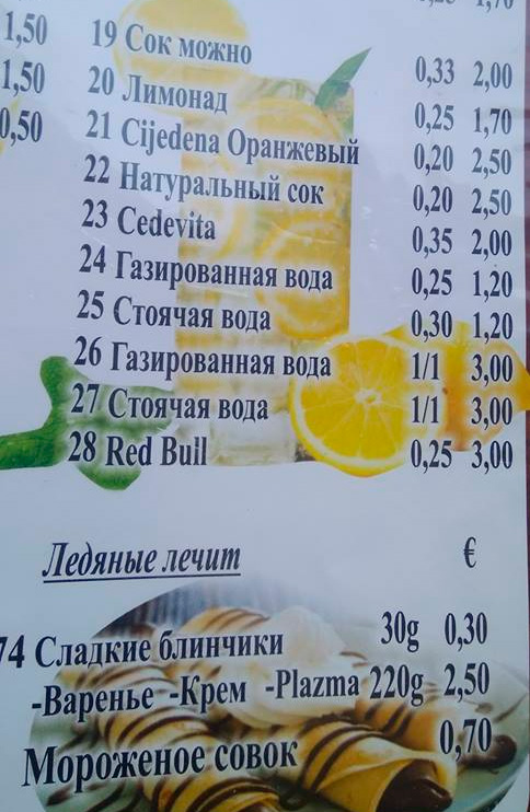 Попить? Сок можно. Стоячую воду можно. Ледяные лечит, но мороженое там, если честно, совок совком!