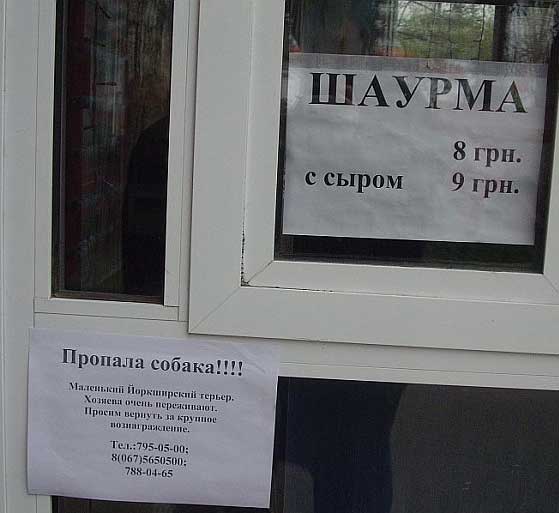 Объявление про собачку обеспокоенные хозяева сами радом с шавермой сфоткали и Алексу прислали, для более широкого распространения)