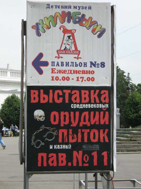 Ну, положим, на снимке ясно видно, что детский музей и орудия пыток в разных павильонах ВВЦ, а вот то, что эти орудия пыток фактически в павильоне с медтехникой - пробирает больше.