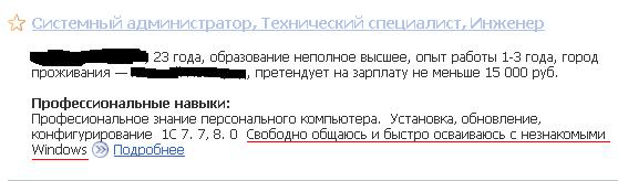 "Никому отличный сисадмин не нужен?" - интересуется Кирилл. Большой профи. Отлично общается. А уж если увидит что-нибудь совершенно незнакомое вроде Windows, быстро освоит бюджет и свалит куда подальше.