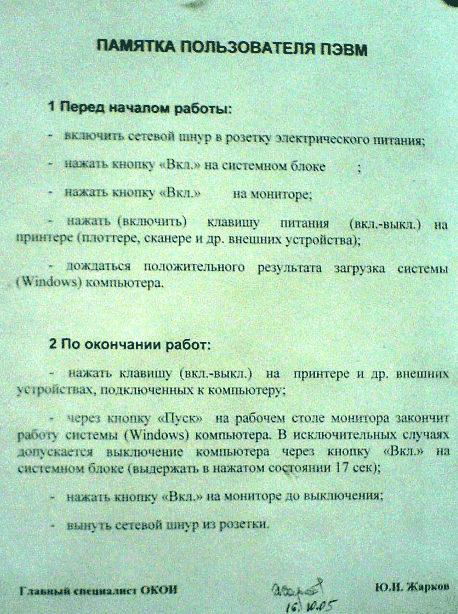 Мне особенно про держание 17 секунд кнопки "Вкл." на системном блоке понравилось. Интересно, что курит этот главный специалист ОКОИ?