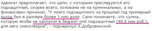 У арестованного главы "Арбат Престижа", удивляется Svetlana, то ли адвокат совсем не умеет считать, то ли это просто бизнес такой трудный - зарабатываешь миллион долларов, а налогов платишь два миллиона долларов.