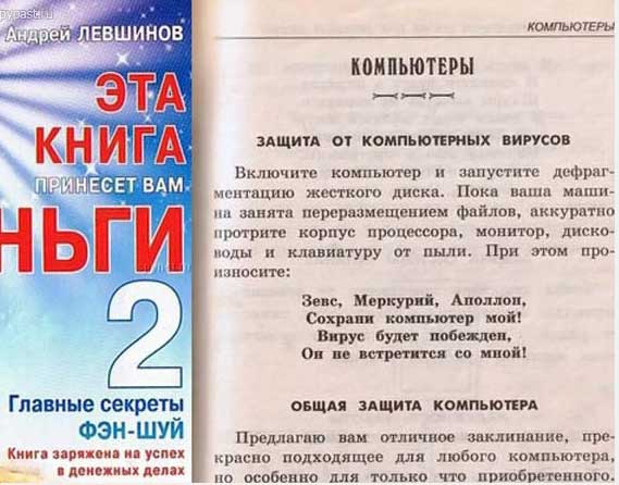 По Сети давно гуляют сканы этого убожества - книги некоего Левшинова, где под модным словом "фэн-шуй" скрывается бормотанье неграмотной деревенской бабки. Dragster любезно прислал самый хит - левшиновский антивирус.