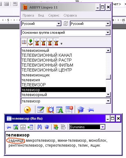 В хорошем словаре ABBYY Lingvo 11, рассказала Warda, весьма богатый выбор синонимов. Например, кто бы мог подумать, что является синонимом слова телевизор!