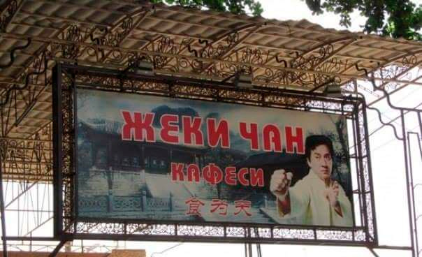 НП: Вывеска с Жеки Чаном - явно киргизская или казахская. В киргизском языке "ж" читается как "дж". Была, например, газета под названием "Жунгли закону" - "Закон джунглей", если по-нашему.