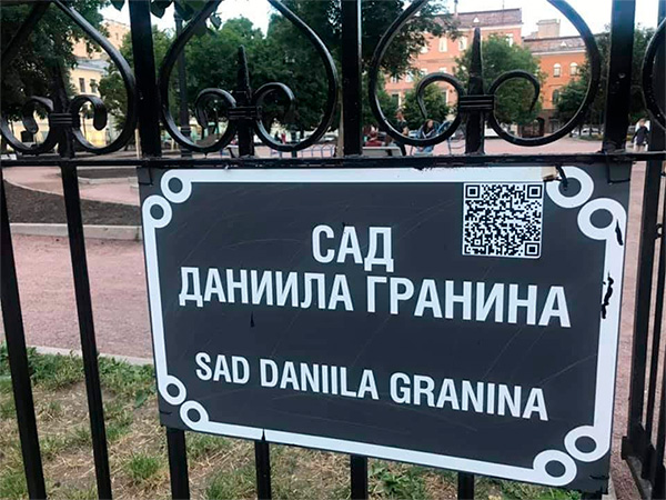 Если это реально сад, то и перевести следует на английский как "garden". Если было бы название станции метро, к примеру, то на самом деле правильный вариант - "Sad Daniila Granina".