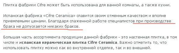 У этой испанской фирмы, восхищается Вера, брак не допускается даже при производстве брака - вот до чего дошло качество!