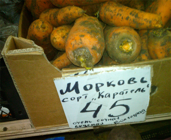 Название-то у сорта моркови нормальное - каротЕль. Это торгаши безграмотные.