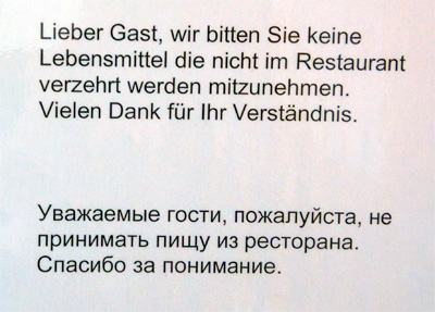 С немецким - мои сочувствия переводчику. Сам учил немецкий в институте, потом лет двадцать не пользовался, - так в грамматике этого объявления по-немецки разобрался где-то с пятой итерации.