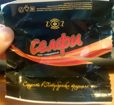 Нуга с карамелью "Селфи" - это красиво, считает Алексей. Но могли бы обойтись без низкопоклонства перед Западом и назвать конфету "Автопортрет". Звучит также по-дурацки, но зато хоть на родном языке.