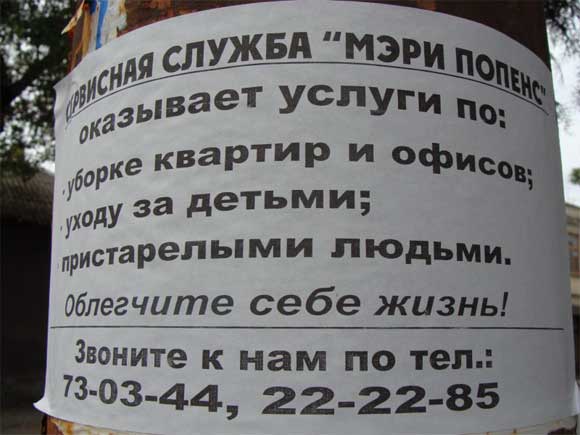 Денис обнаружил интереснейшее объявление в Сухуми. "Мэри Попенс" - это пять! С другой стороны, хорошо, что хоть не "Мэри Попенис".