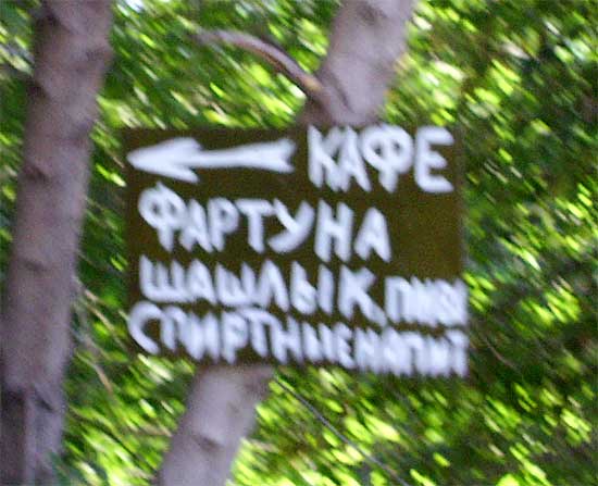 На этом фоне кафе "Фартуна", замечает Сергей Андреев, даже как-то остается в тени деревьев.