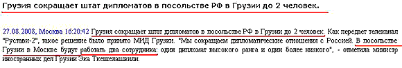 Александр Ланге прочитал эту жуткую новость и решил, что Саакашвили отстрелит всех российских дипломатов в Грузии, кроме двоих. Но последняя фраза в новости успокоила - дипломаты, судя по всему, выживут.