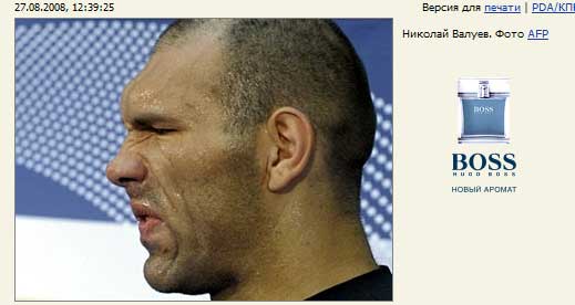 Николаю Валуёву, со всем уважением замечает lisjonka, явно не понравился этот новый аромат от Hugo Boss.