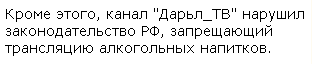 Мужики, все на Дарьял-ТВ, советует Dot. Они ухитряются транслировать в дома алкогольные напитки, несмотря на все запреты: