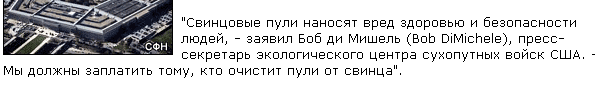 "Американские пули должны быть совершенно безопасны, - считает Боб ди Мишель. - Мы должны убивать, не нанося никакого вреда здоровью людей. Чик - и готово. Потому что мы - самая гуманная нация в мире. А кто с этим не согласен, того уроем нахрен!"